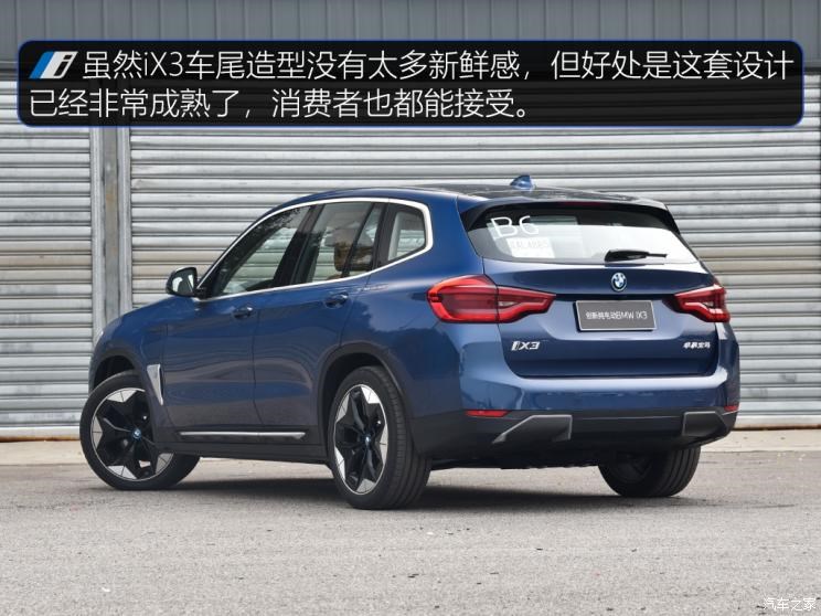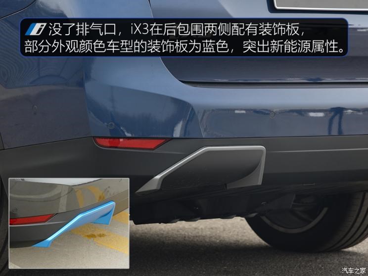 相比前脸,车尾的新设计细节较少,整体还是很端庄稳重,追求层次感的营造。但从“iX3”的尾标和后包围的装饰板能看出来这辆车的特殊身份。总之,iX3在外观设计上没有脱胎换骨般的变化,不过每一处细节的改变单拎出来也都很耐看,放在一起也很和谐;但如果可能的话,还是希望该车未来能加入更多全新设计语言,以更符合其纯电动身份。