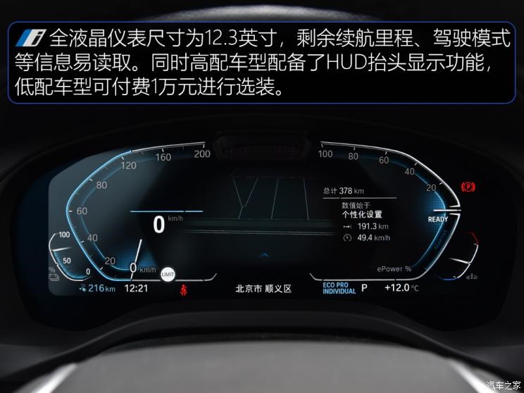 全液晶仪表的界面设计、信息布局与宝马现有的插电式混合动力车型几乎相同,功能性丰富,车辆设置、车辆信息以及导航等内容都得到了展示。但对于一款纯电动车型而言,我希望它能更加突出剩余续航里程、电量等重要信息的显示。