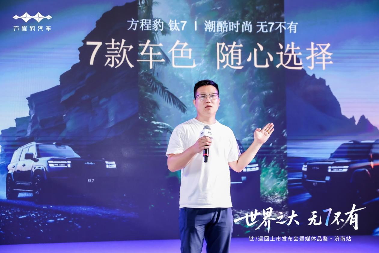 发布会现场还特别邀请到了来自齐鲁晚报汽车事业中心品牌运营部副主任李璟瑶老师,从市场与媒体专业角度为大家带来专业的解读与分享;她提到,作为方程豹“悦己宜家”精神的集大成者,钛7以其卓越的都市潮流魅力给人留下深刻印象。钛7兼顾“方盒子”硬派越野的“面子”和如家一般舒适智能的“里子”,打破了硬派和家用的二元对立,是家用硬派全新品类超值之选。且钛7将运动基因与城市美学完美融合。整车外观在延续品牌辨识度的同时,采用了更符合都市审美的流线型设计,优雅的车身线条与精致的细节处理,展现出与众不同的时尚气质。