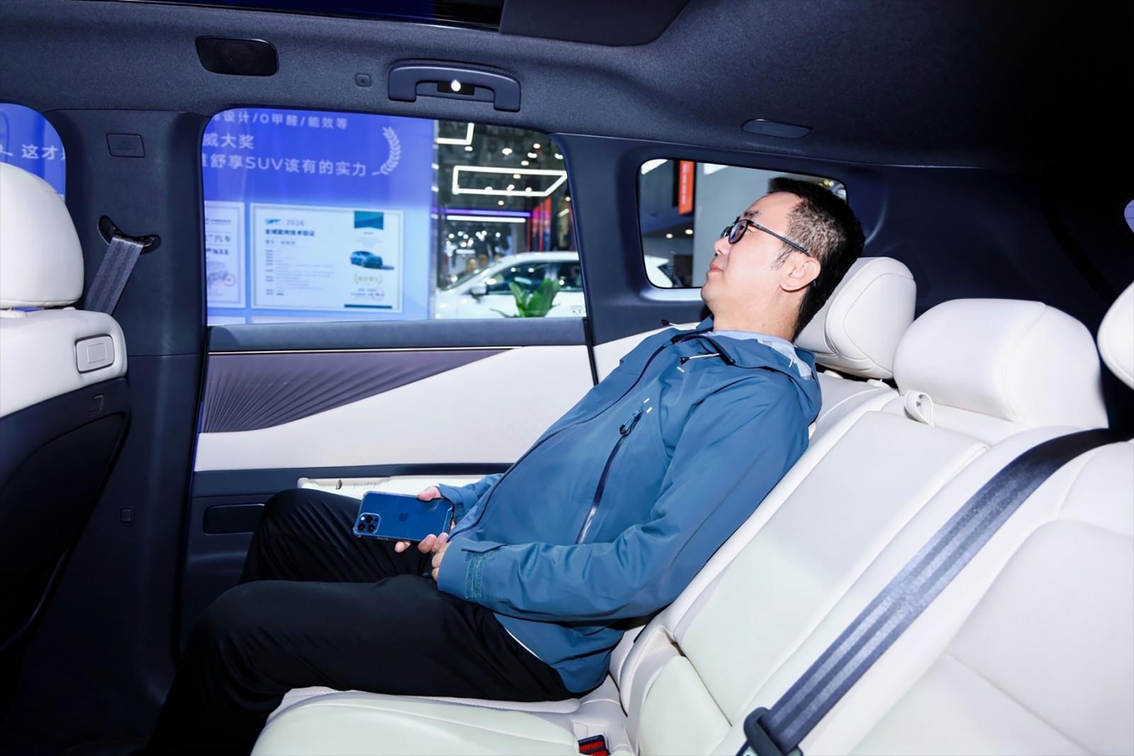 包含:双开门AI智能冷暖冰箱、副驾AI零重力云毯座椅、副驾按摩加热颈枕、副驾后排折叠桌板、主驾后排拓展接口