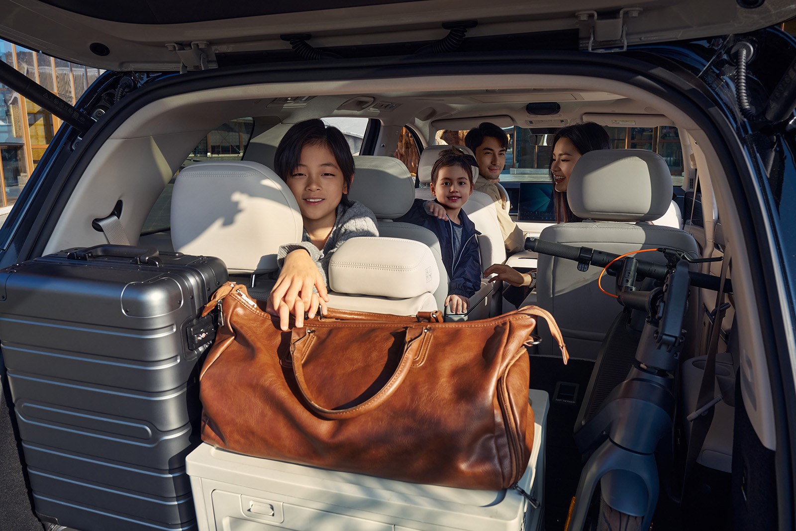 大唐是中国品牌首款采用“2 2 3”座椅布局的全尺寸SUV,真正让七口之家出行告别将就。其拥有同级第一的89.3%得房率与6.34平方米套内面积,第三排不再是临时加座,是名副其实的正座C位。二排中央过道宽达201mm,成年人也能从容通过。满员状态下,前后备箱仍可装下10个20英寸登机箱,全车更有47处储物空间与252L全球最大电动前备箱,轻松收纳钓鱼与运动装备。